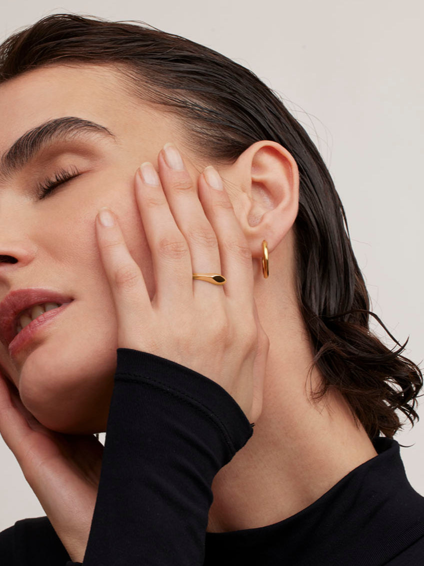 Unsere Gold Vermeil Kollektionen zeichnen sich durch eine besonders dicke Schicht aus recyceltem 18k Gold aus, die mehrfach auf hochwertiges, recyceltes 925 Sterling Silber aufgetragen wird. Im Vergleich zu traditionell vergoldetem Schmuck ist Gold Vermeil durch die bis zu fünfmal dickere Goldschicht besonders langlebig.
