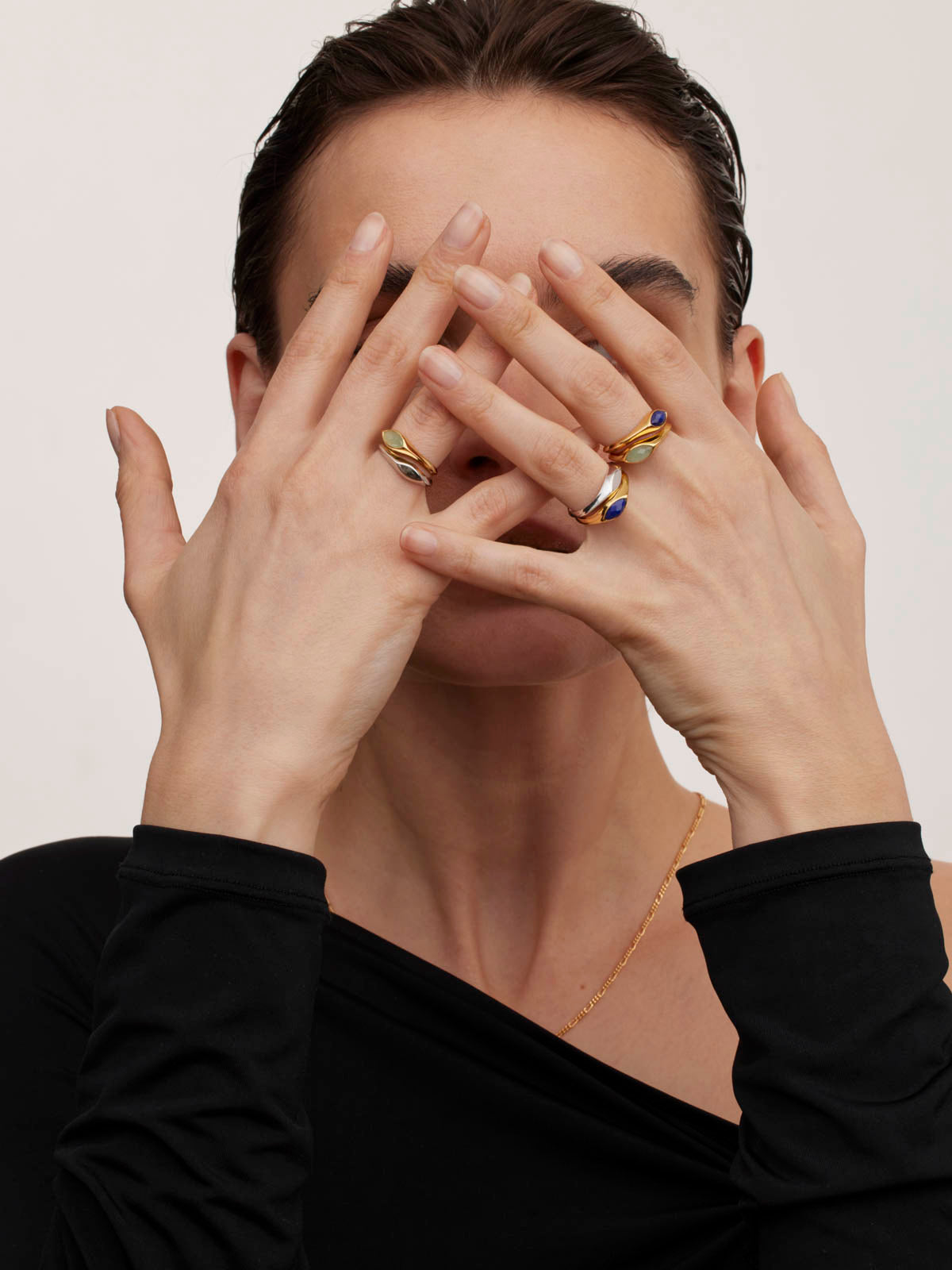 Ein wunderbar schlichtes Essential für deinen Stack: Nicht zu aufdringlich und durch die besondere Form trotzdem ein absoluter Blickfang. Unser nach der amerikanischen Bildhauerin benannte Ring begleitet dich problemlos vom Caféhaus in die Cocktailbar.