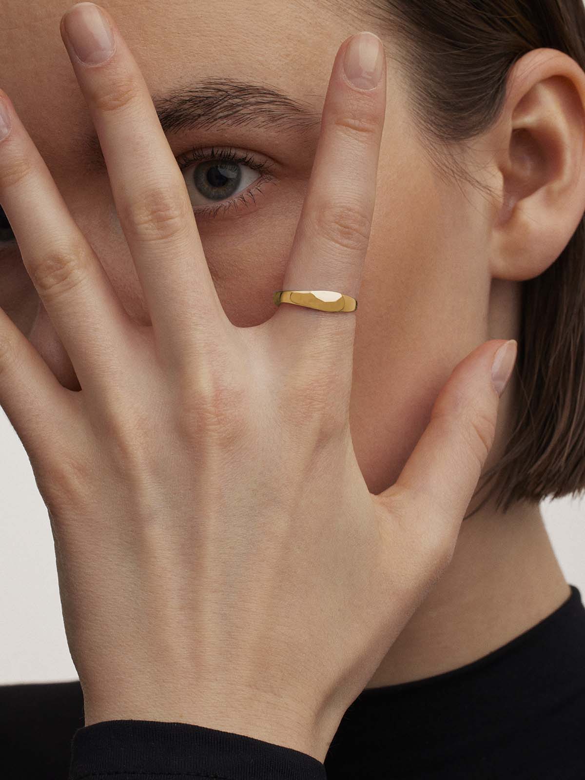 Unsere Gold Vermeil Kollektionen zeichnen sich durch eine besonders dicke Schicht aus recyceltem 18k Gold aus, die mehrfach auf hochwertiges, recyceltes 925 Sterling Silber aufgetragen wird. Im Vergleich zu traditionell vergoldetem Schmuck ist Gold Vermeil durch die bis zu fünfmal dickere Goldschicht besonders langlebig.