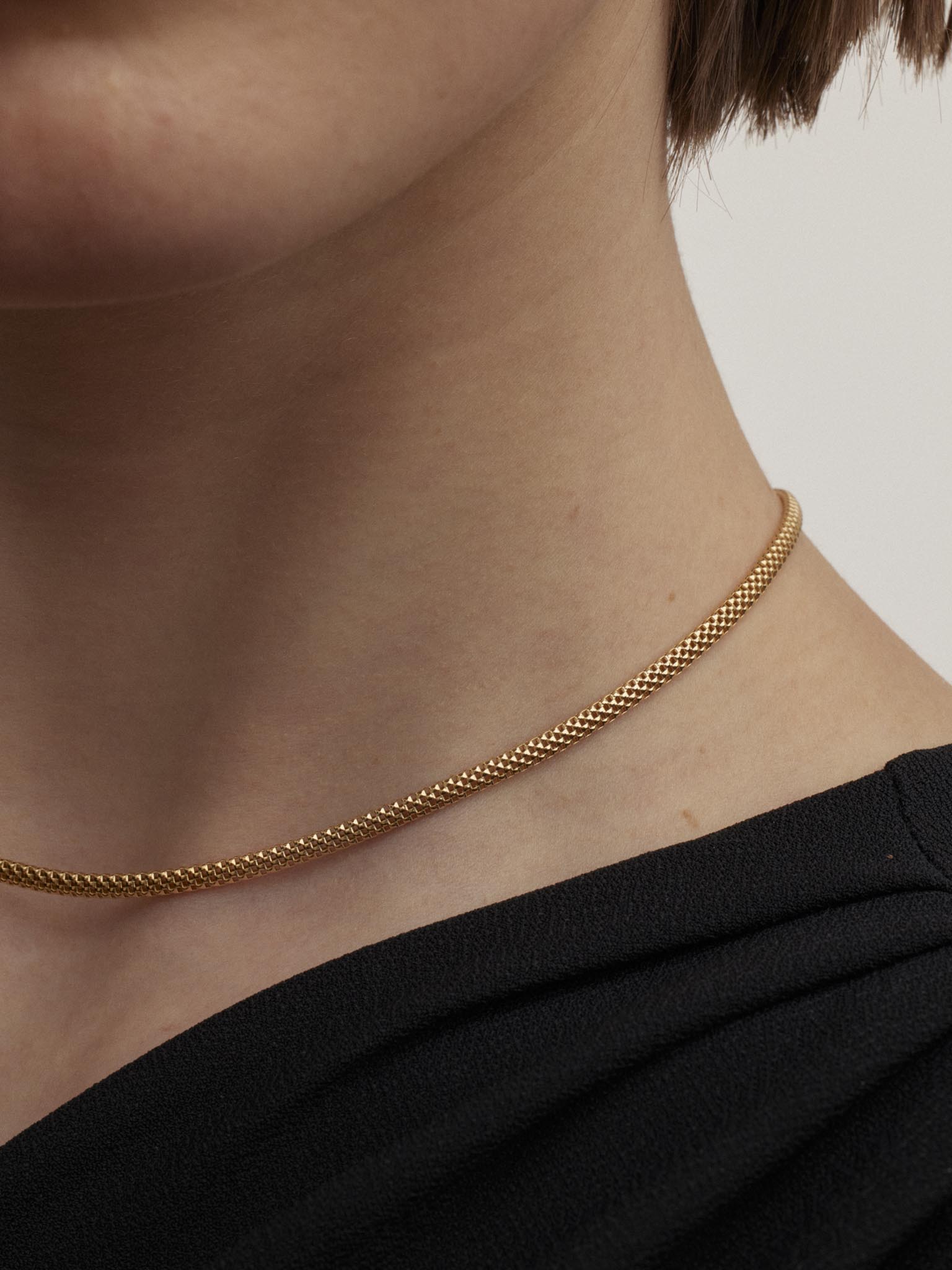 Federleichtes Design aus gewebten Ketten mit unglaublicher Textur. Die feine Verarbeitung unseres Chokers aus Norditalien machen ihn zu einem ganz besonderen Schmuckstück, das sich problemlos mit anderen Halsketten kombinieren lässt.