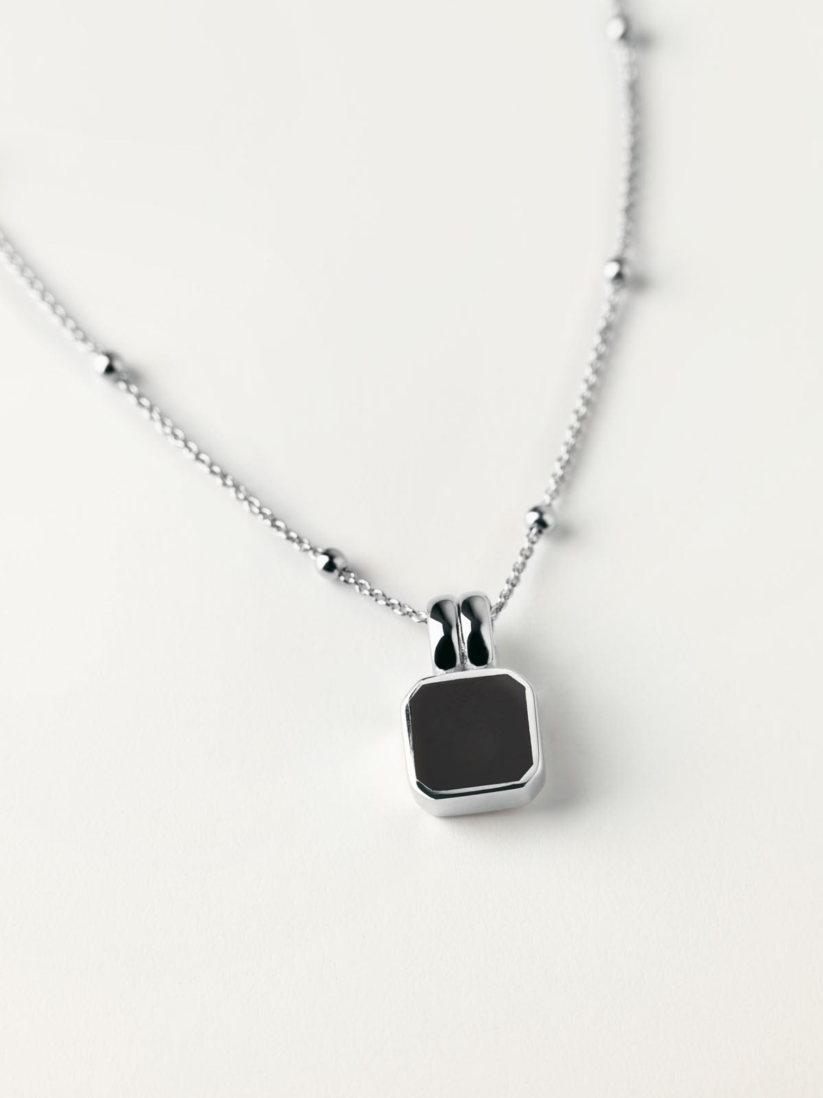 Schon im Presale eine unserer beliebtesten Halsketten. Die feine Bobble-Chain bringt den glattschwarzen Onyx mit seiner geschmeidigen Oberfläche perfekt zur Geltung.