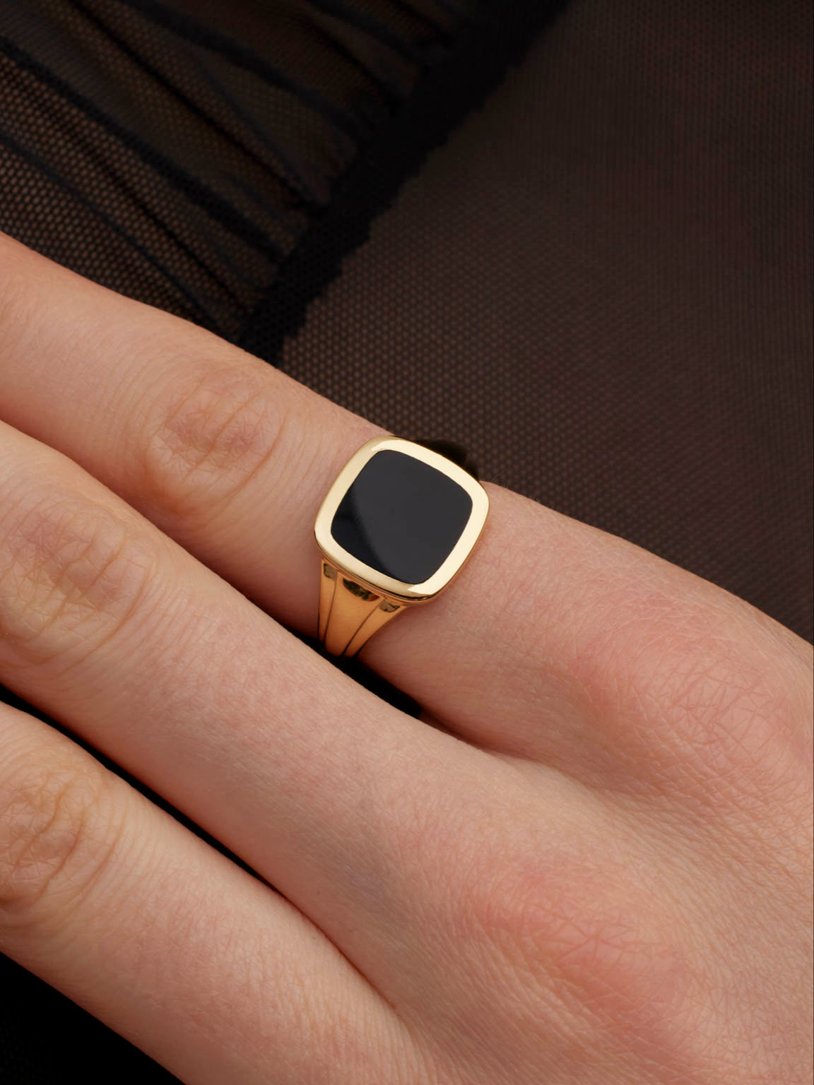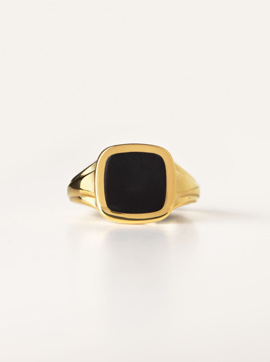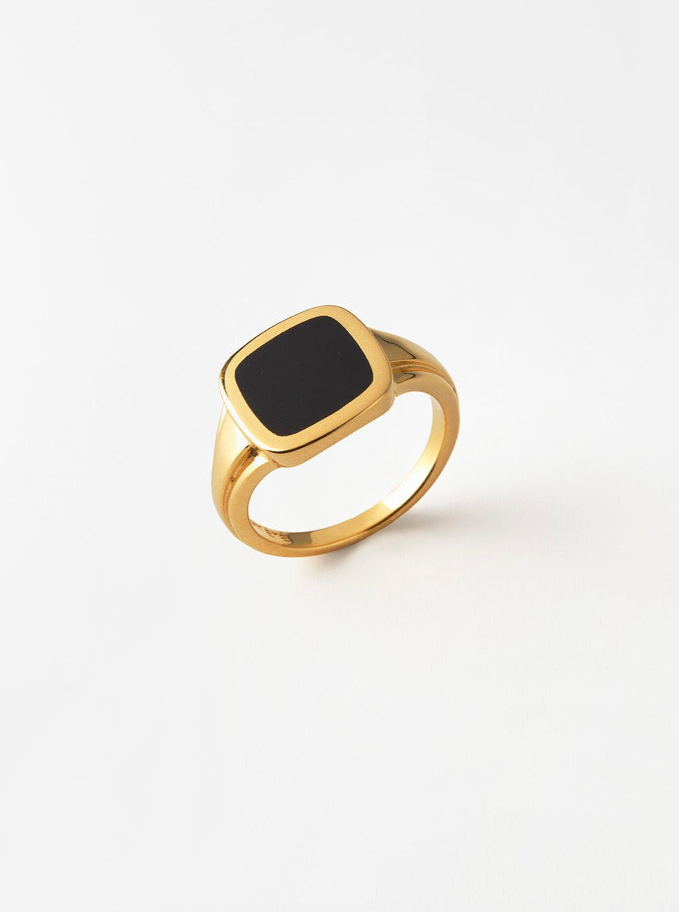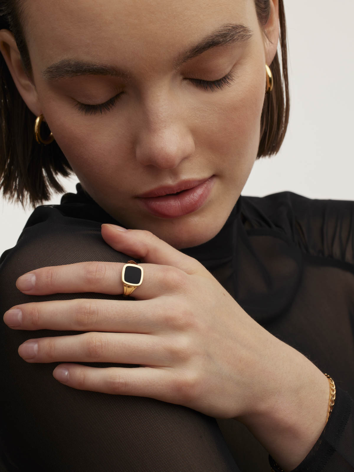 Unser Onyx Ring ist eine zeitgemäße Version des klassischen Siegelrings. Fein gearbeitete Linien entlang der Seiten verleihen ihm eine subtile Vintage-Note.