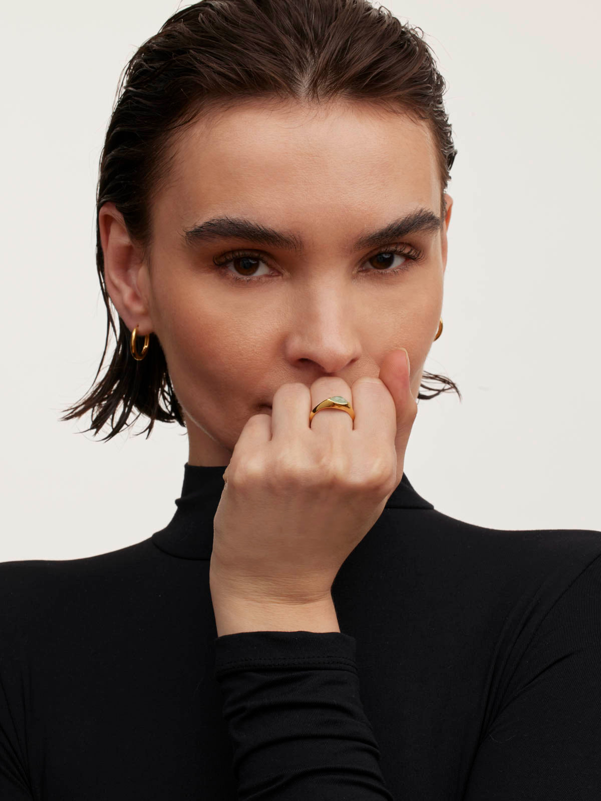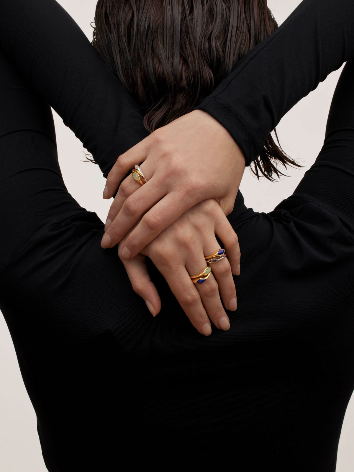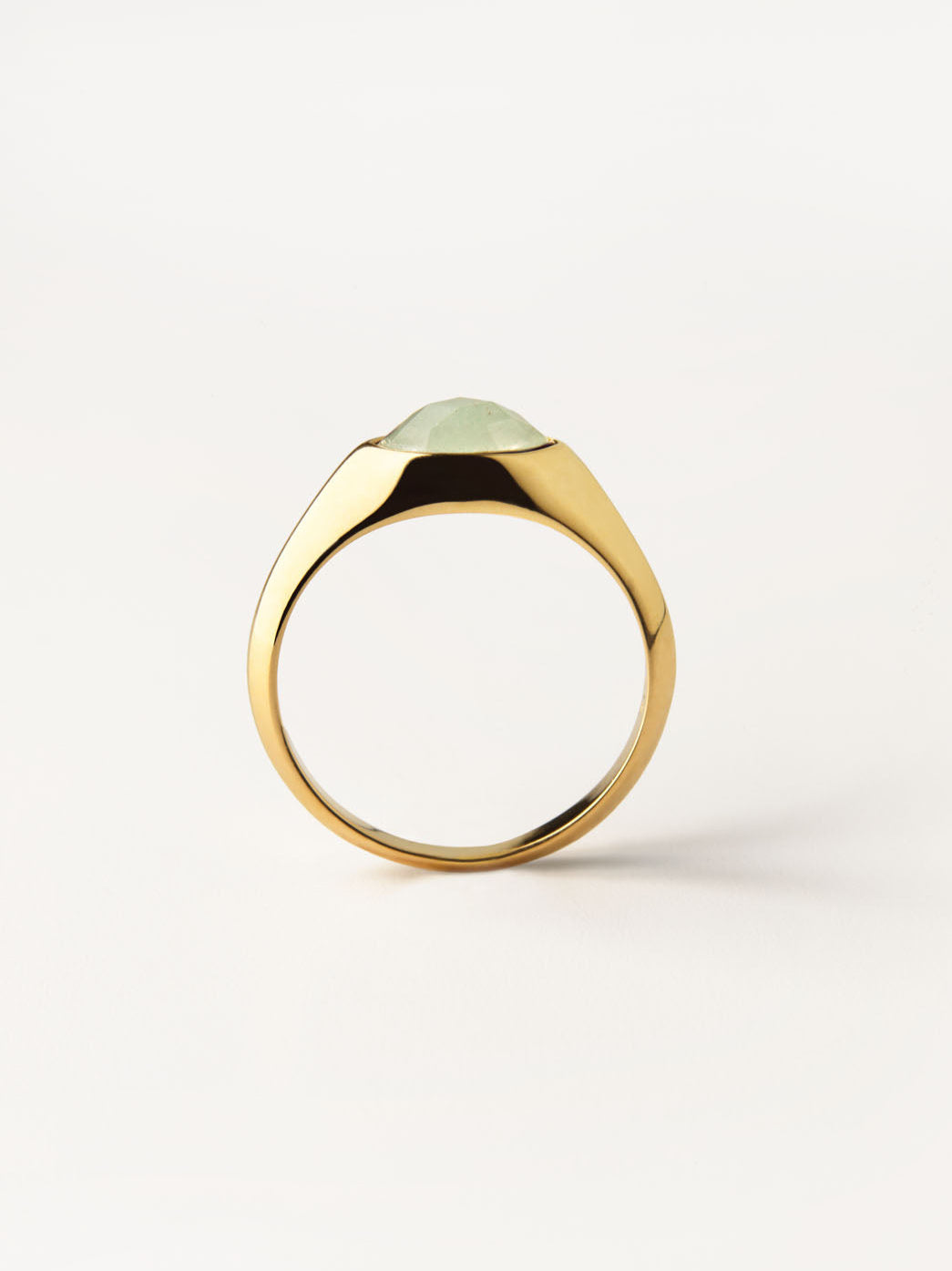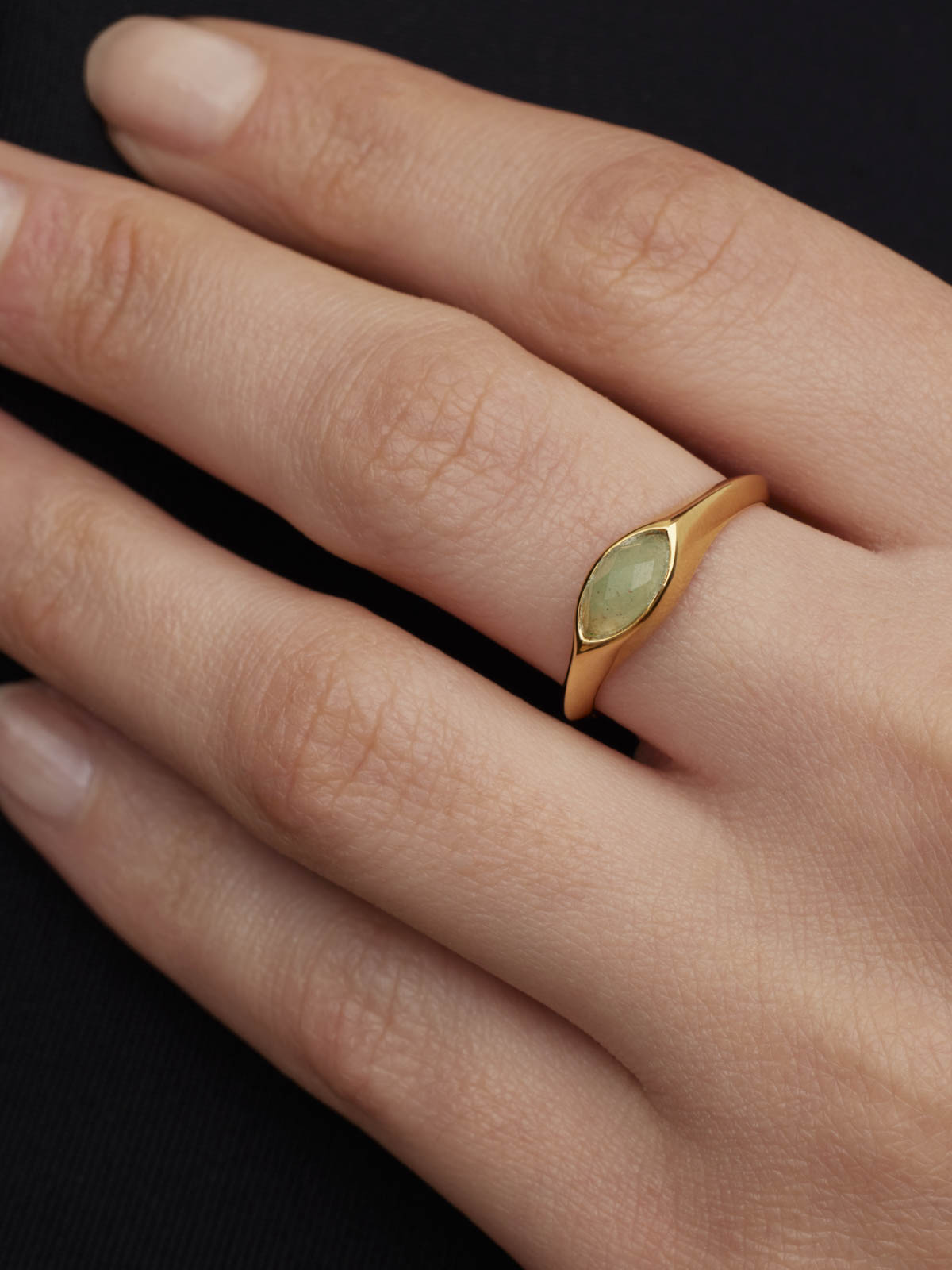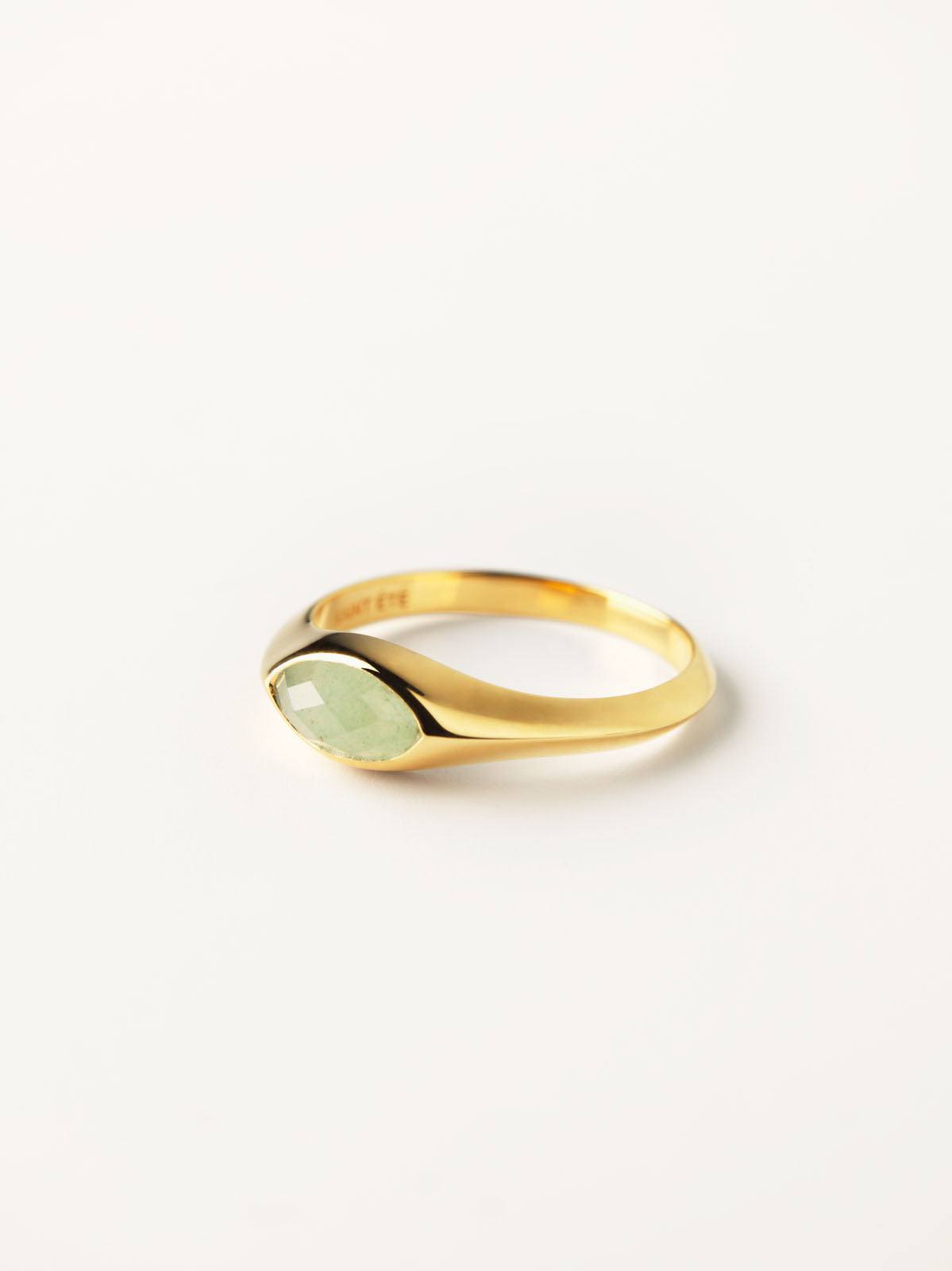 Made to wear on repeat. Der handgeschliffene, pastellgrüne Aventurin wertet deinen Ring-Stack auf natürliche Weise auf. Der feine Schliff des Edelsteins verleiht der glatten Form des Rings Struktur und Tiefe.