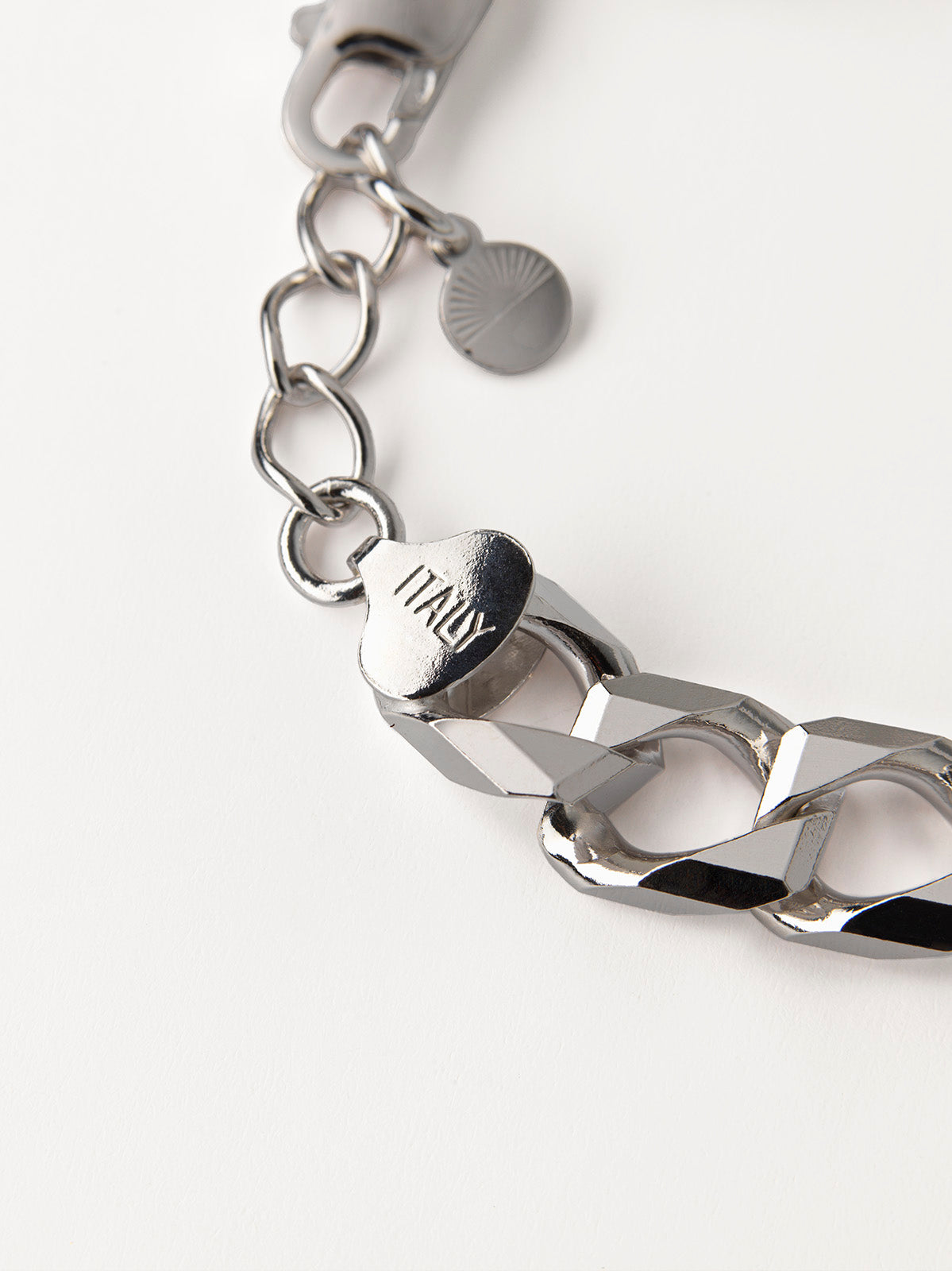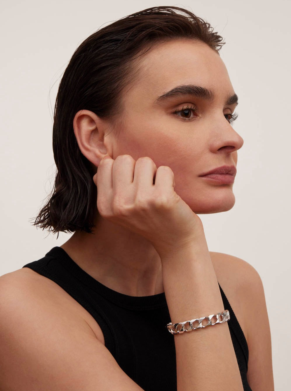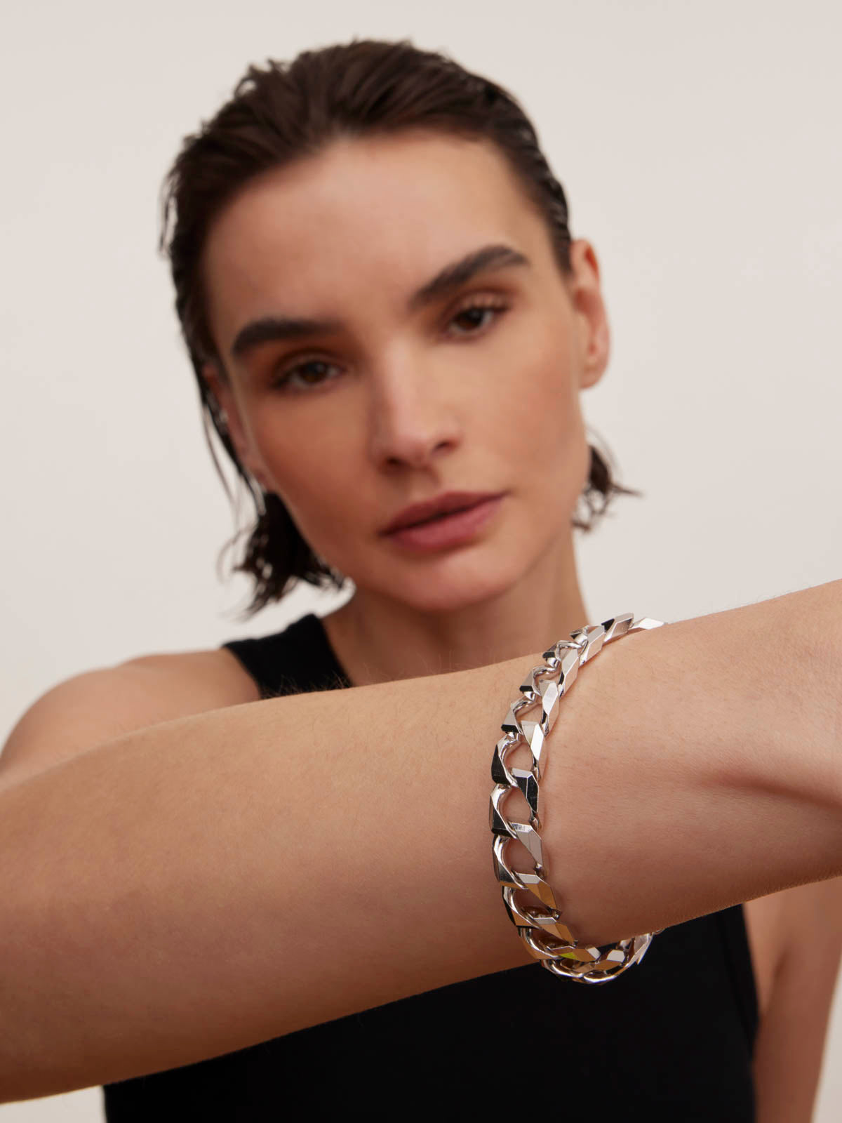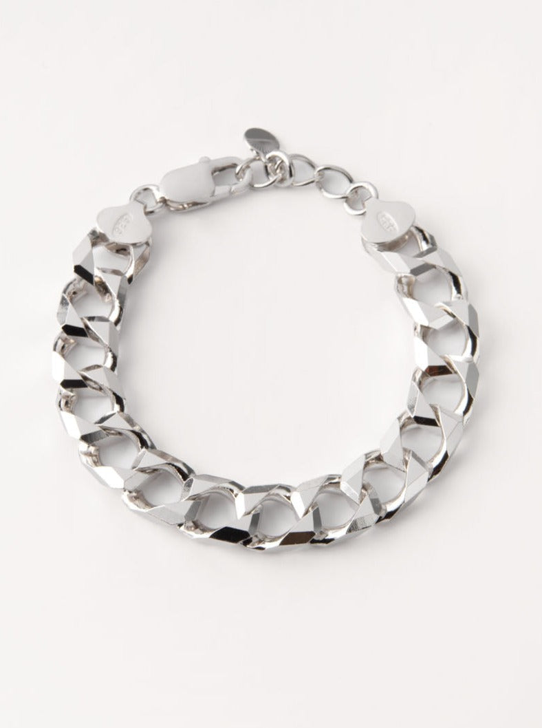 Bold, chunky, timeless: Dieses Armband ist der Inbegriff eines Statement-Piece. Der Diamantschliff der kantigen Glieder verleiht dem Band aus Sterling Silber eine beeindruckende Textur und Tiefe. Dabei enthüllt jede Perspektive ein neues Spiel von Licht und Schatten.