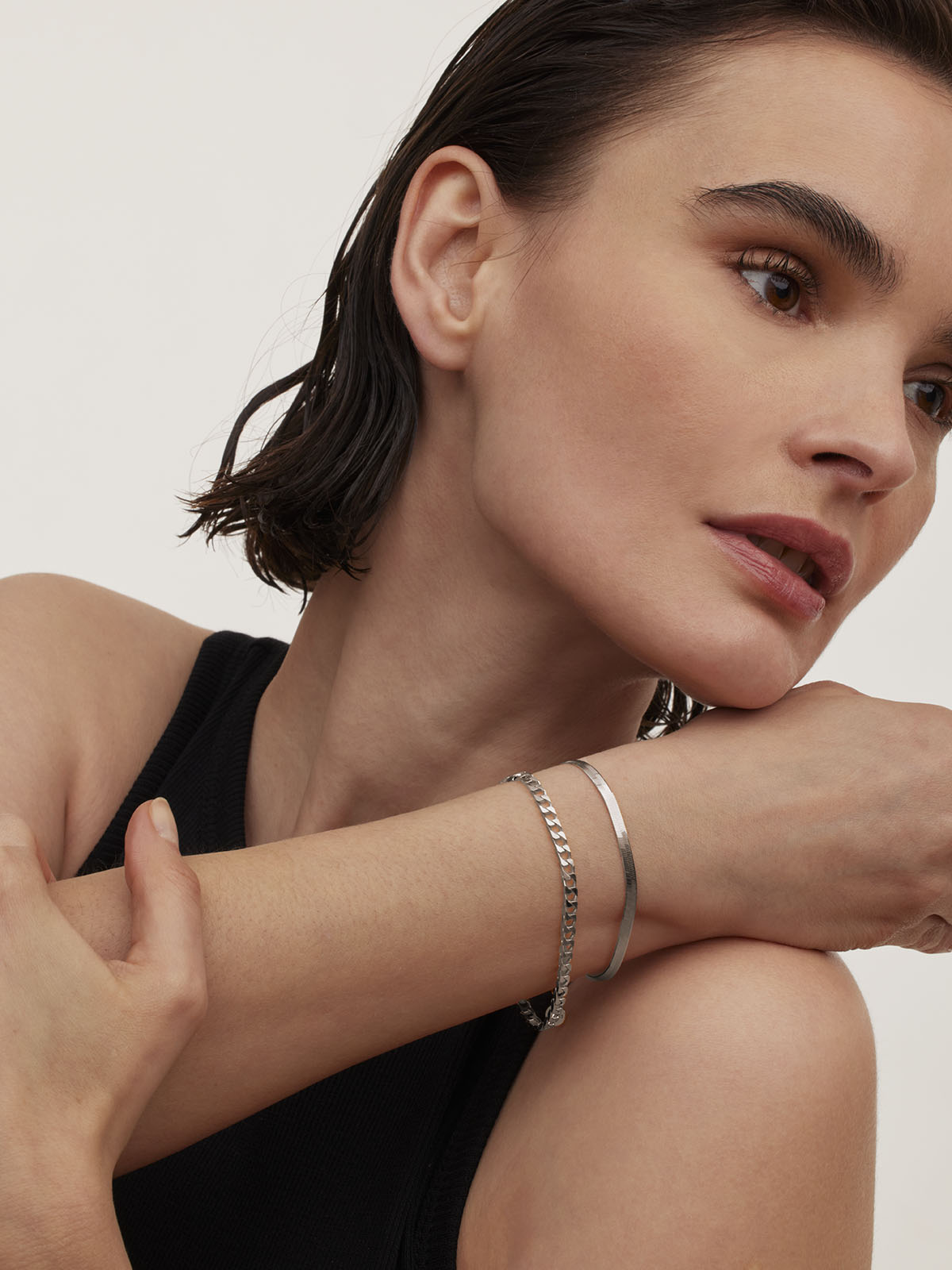 Die eckigen Glieder mit Diamantschliff verleihen diesem Arband eine organische Silhouette mit extra Glanz, der jedes Outfit aufwertet. Dieses Vintage-Statement-Piece integriert sich mühelos in deinen Stack und lässt sich problemlos mit anderen Armbändern kombinieren.