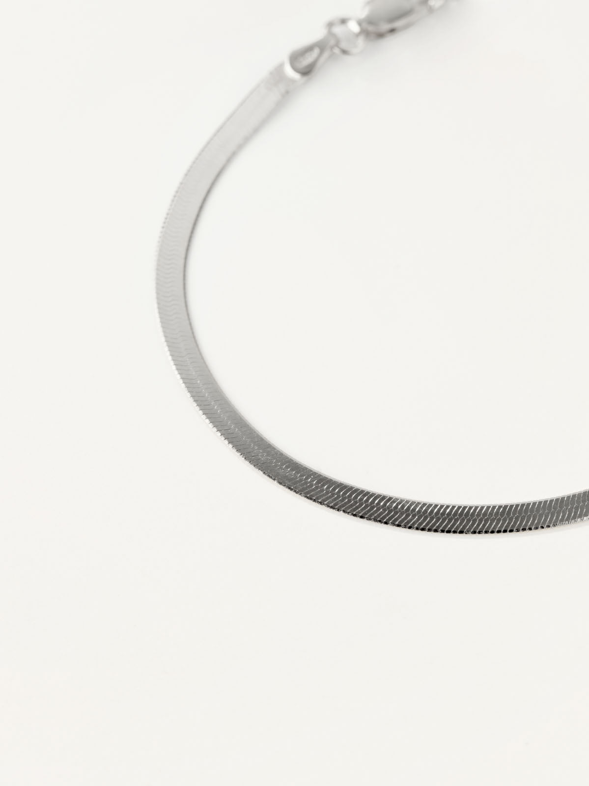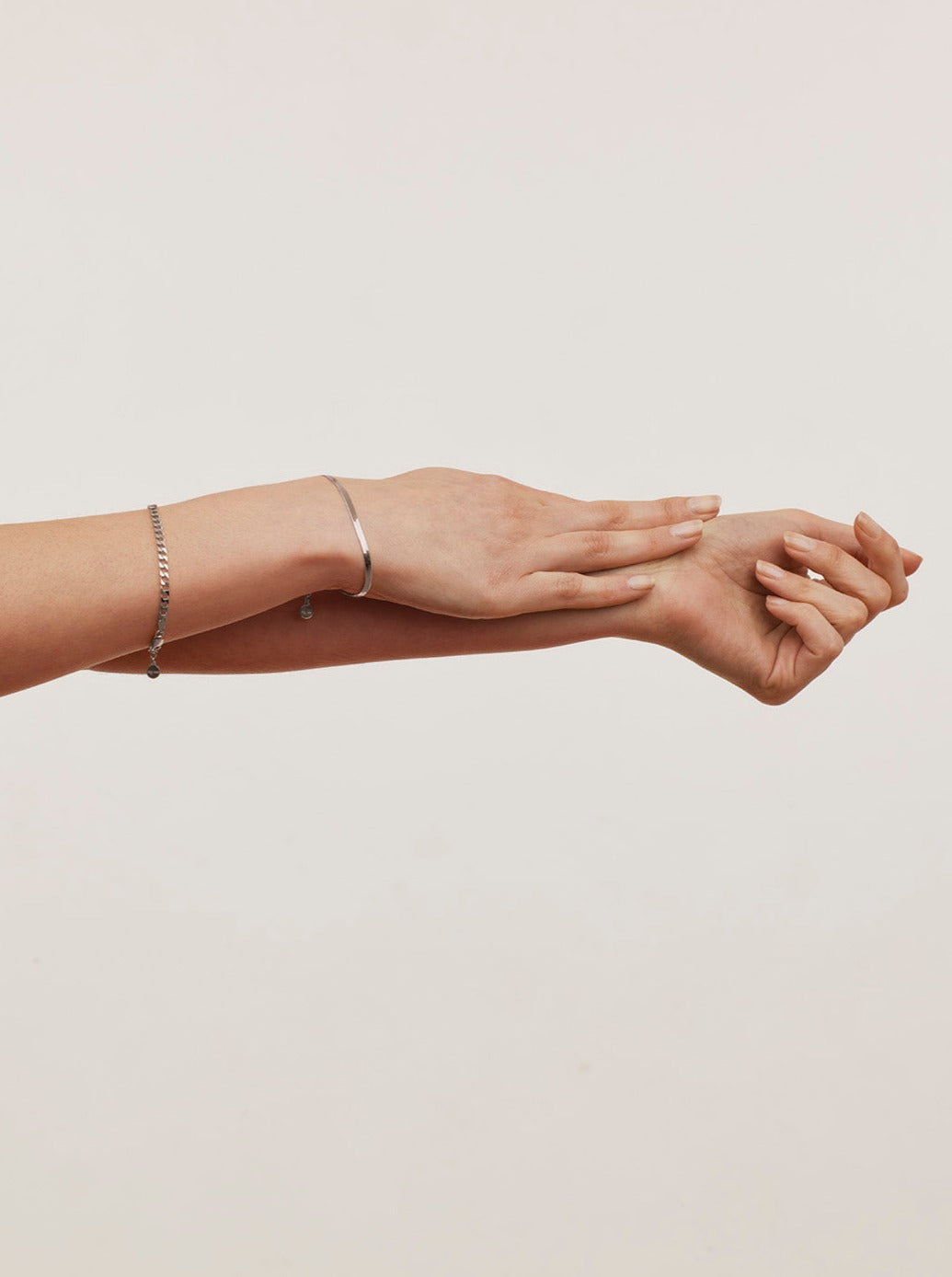 Die feinen Glieder unserer in Norditalien gefertigten Snake Chain verschmelzen nahtlos miteinander und verleihen ihr eine einzigartige Textur. Die glatte Oberfläche des Armbands schmiegt sich sanft an die Kontur deines Handgelenks an.