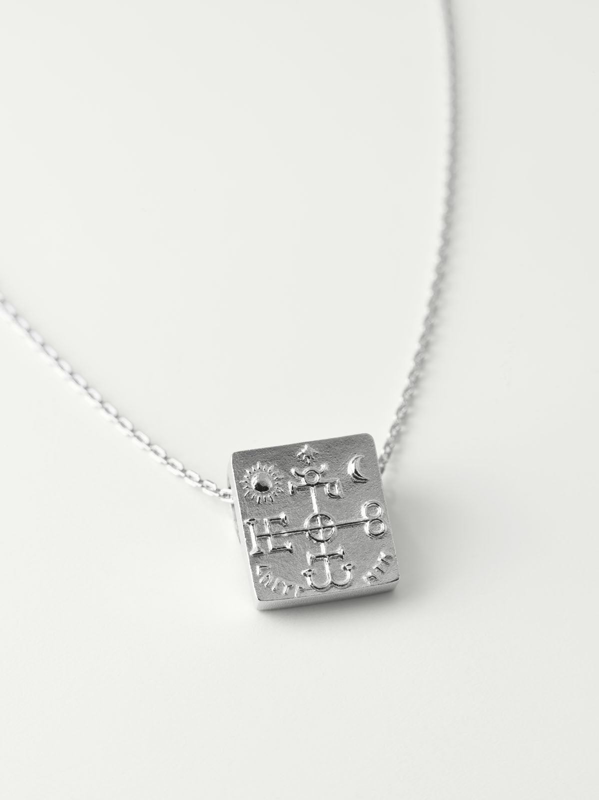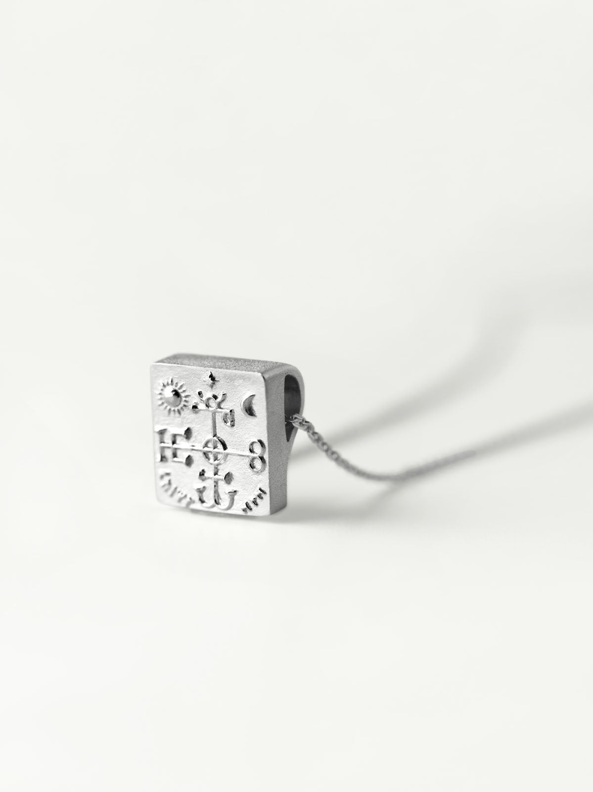 Symbolische Harmonie vereint sich in diesem einzigartigen Anhänger, der in Anlehnung an die römische Philosophie gestaltet wurde. Die Symbole von Sonne, Mond und Sterne stehen für Ganzheit und Harmonie und verleihen dem kantigen Design Bedeutung und Tiefe.