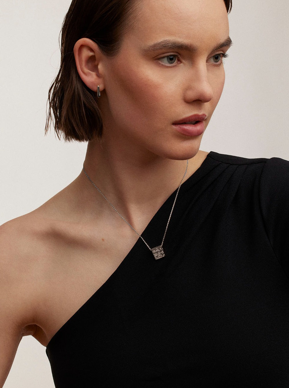 Unser Silberschmuck besteht zu 100% aus hochwertigem, recyceltem 925 Sterling Silber. Unsere Silber-Pieces sind rhodiniert, das bedeutet, dass wir nach der Herstellung eine dicke Schutzschicht aus hochwertigem Rhodium auftragen. Rhodium ist korrosionsbeständiger als Sterling Silber und verlängert somit die Lebensdauer deines Schmuckstücks.