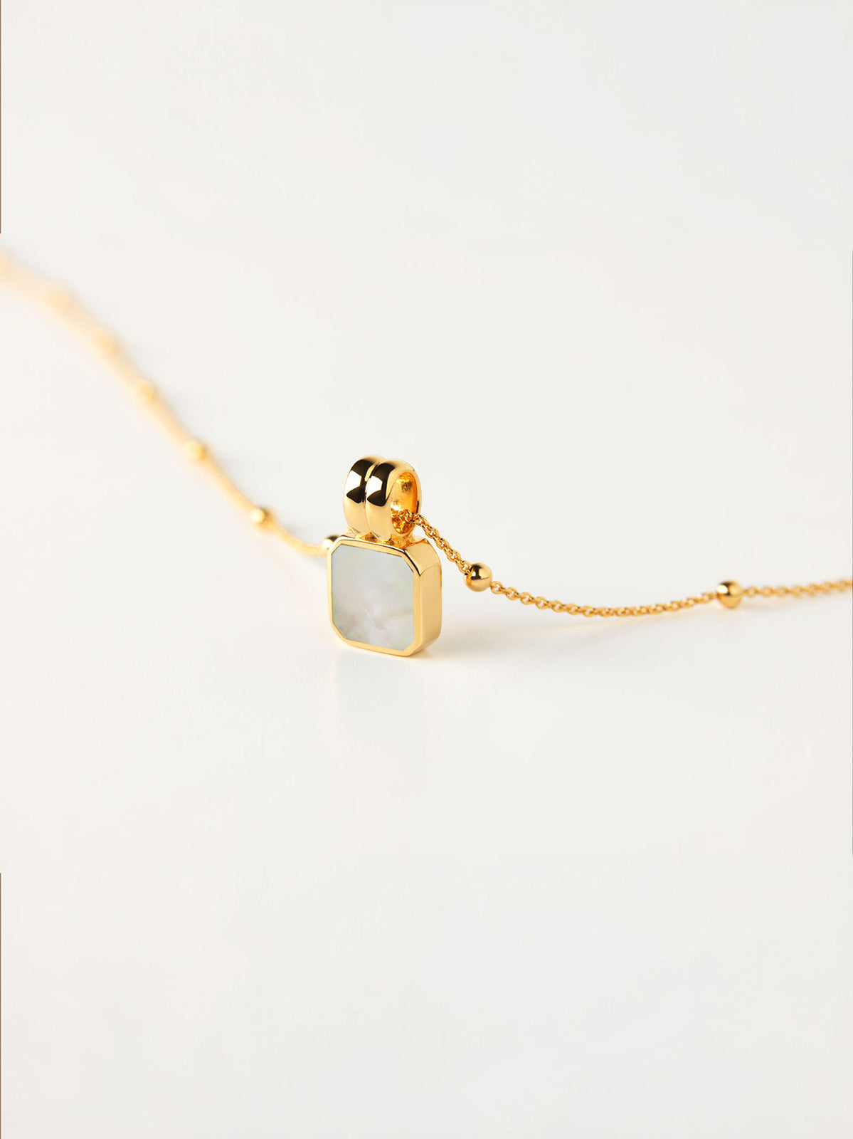 Schon im Presale eine unserer beliebtesten Halsketten. Die feine Bobble-Chain bringt das natürlich weißviolette Perlmutt mit seiner sanft schimmernden Oberfläche perfekt zur Geltung.